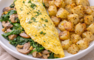 Sautéed chicken bites paired with diced breakfast potatoes and sautéed peppers and onions.