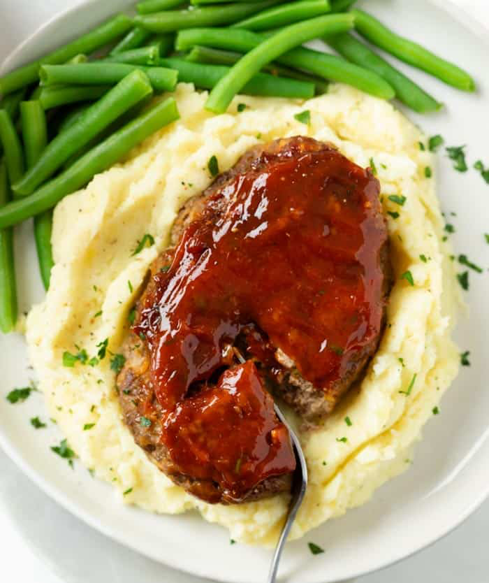 Mini Meatloaf with Mashed Potatoes and Green Beans