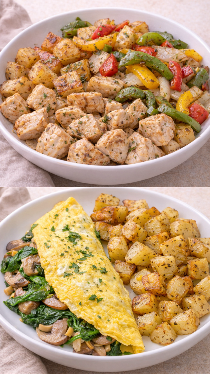 (3) Chicken Breakfast Hash (2) Protein Veggie Omelette(2) Chicken Breakfast Hash (3) Protein Veggie Omelette(5) Chicken Breakfast Hash(5) Protein Veggie Omelette