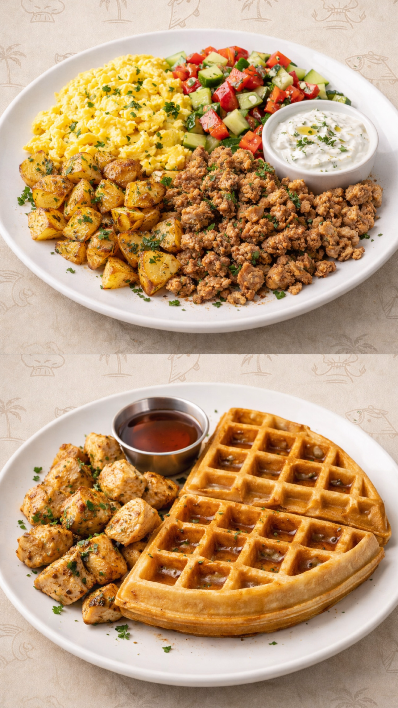 (3) Breakfast Gyro Bowl (2) Chicken & Waffle Protein Plate(2) Breakfast Gyro Bowl (3) Chicken & Waffle Protein Plate(5) Breakfast Gyro Bowl(5) Chicken & Waffle Protein Plate